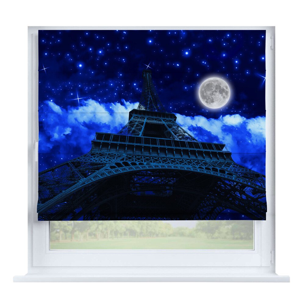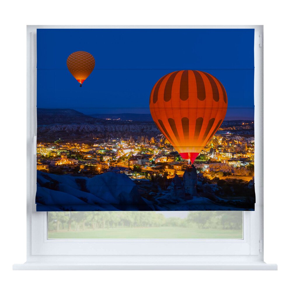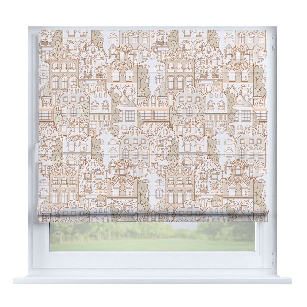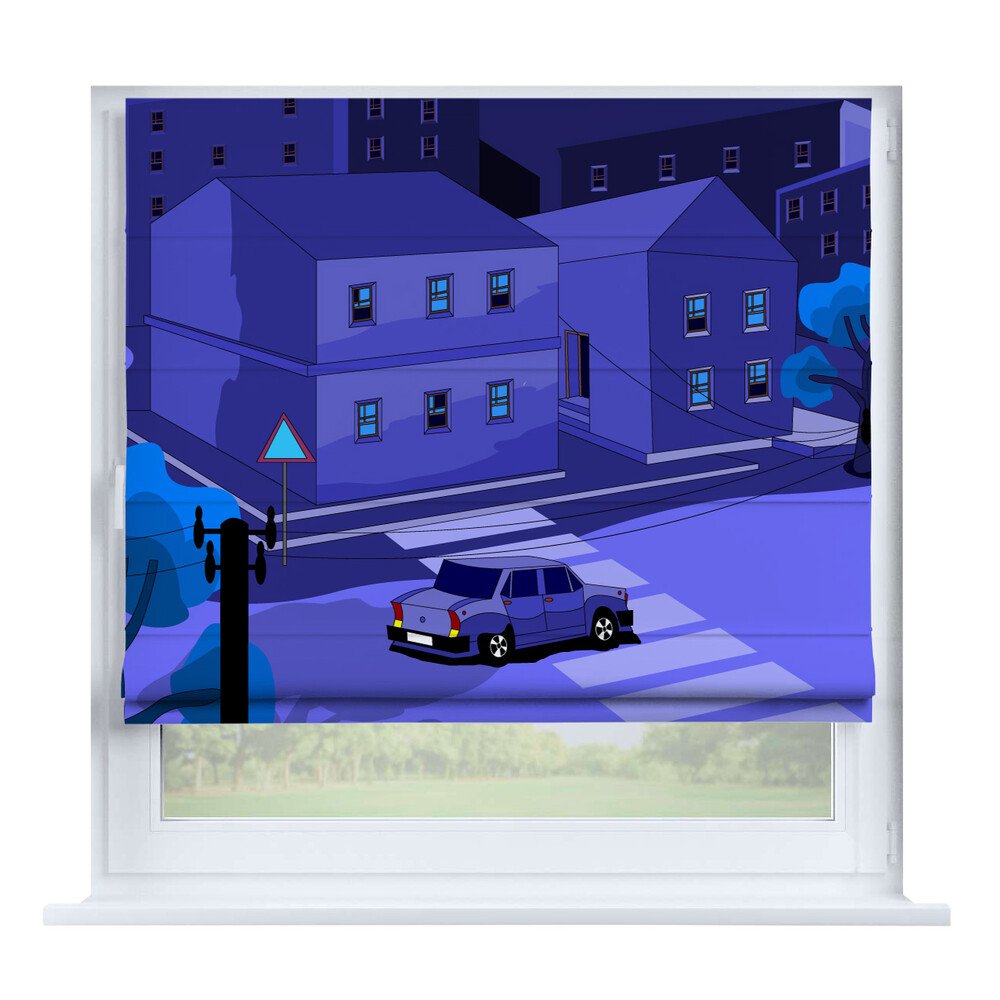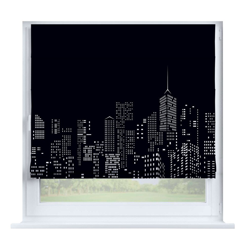 Римская штора день-ночь «Вечерний город», карниз верёвочный