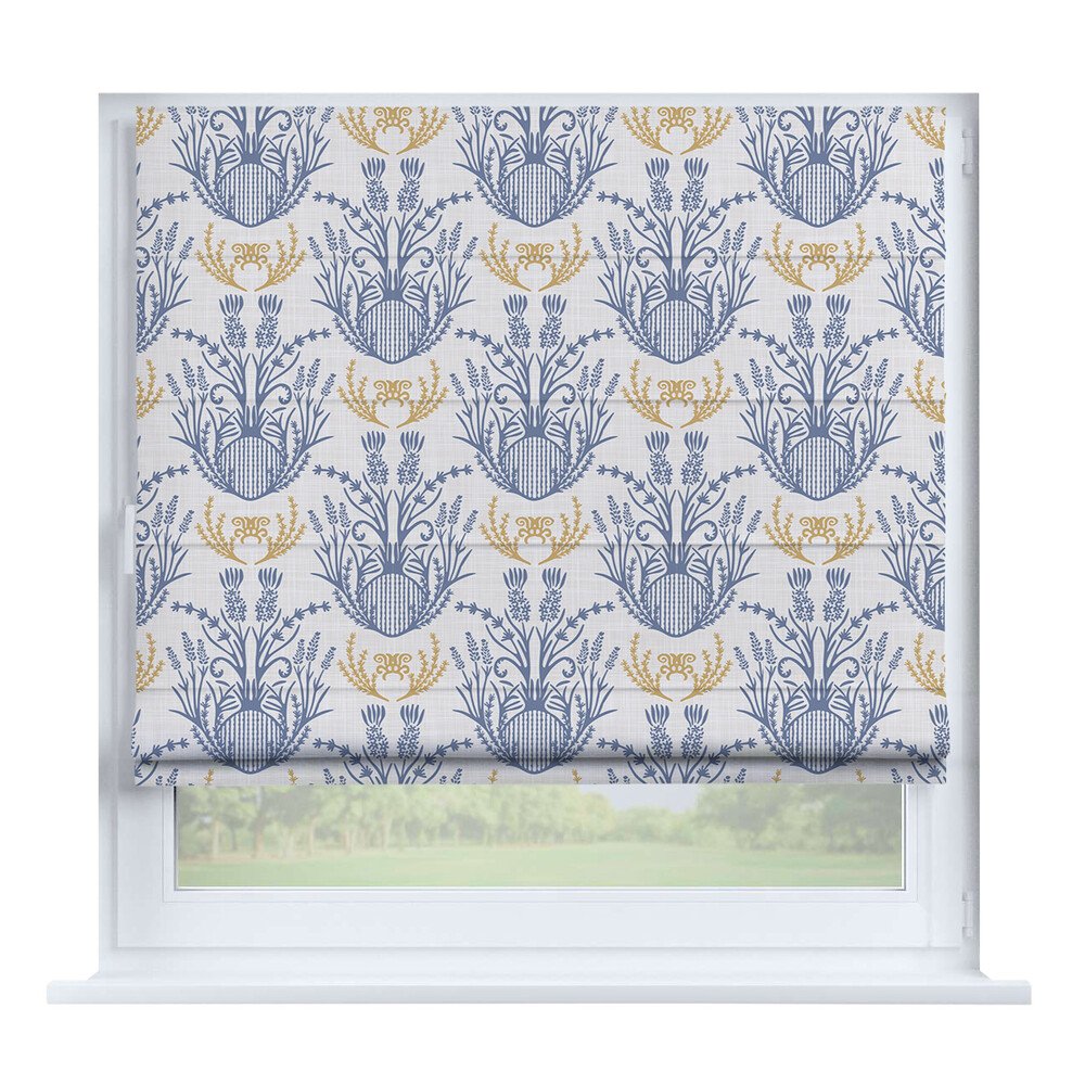 Римская штора день-ночь лён голубой, карниз верёвочный